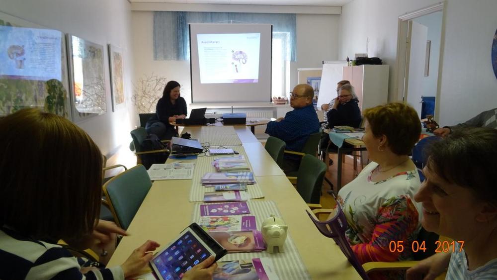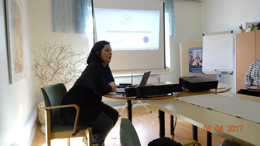 Keskiviikon kerhopäiväämme 5.4.17 vietettiin informaatiota ja keskustelua käyden Aivoliiton kommunikaatiokeskuksen puheterapeutti Paula Kyllösen vetämänä.