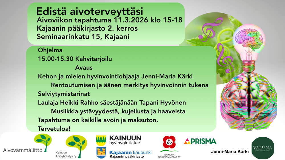 Pysähdytään yhdessä – Edistä aivoterveyttä -tilaisuus 11.3.2026 klo 15.00