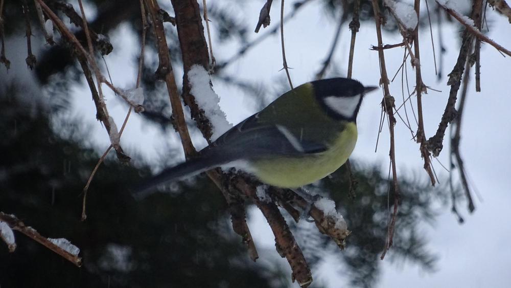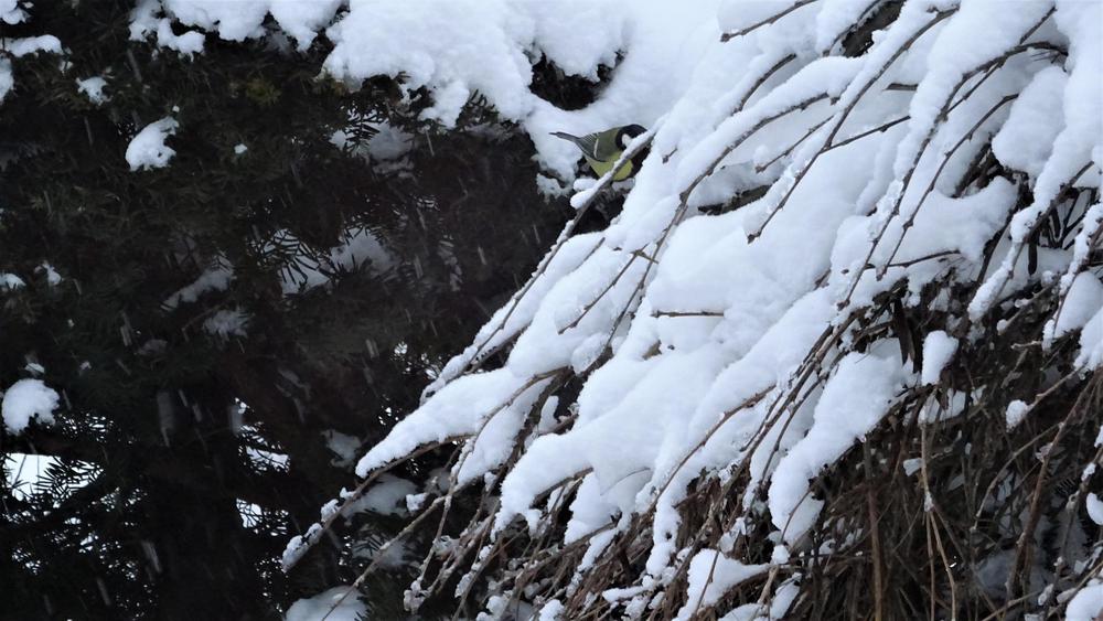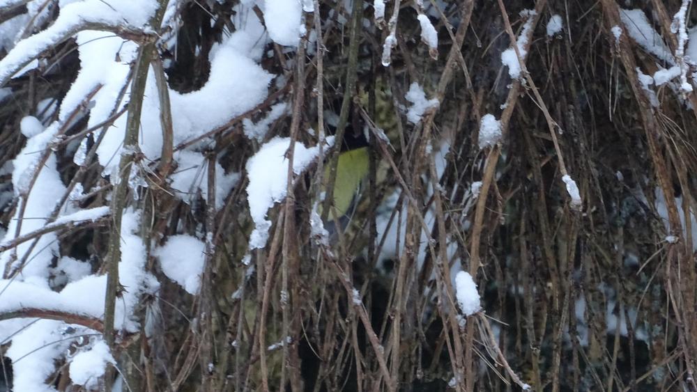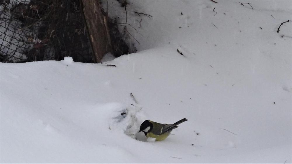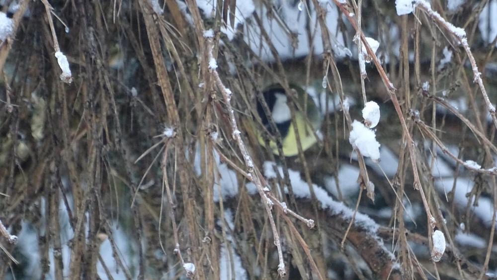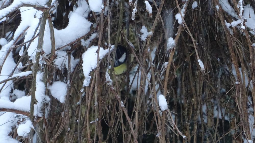 Kuvat on otettu kotipihalla riippuhernepensaan luona missä talitiaista kiinnosti hernepensaan runko ja piileskely siellä ja vähän myös lumella.