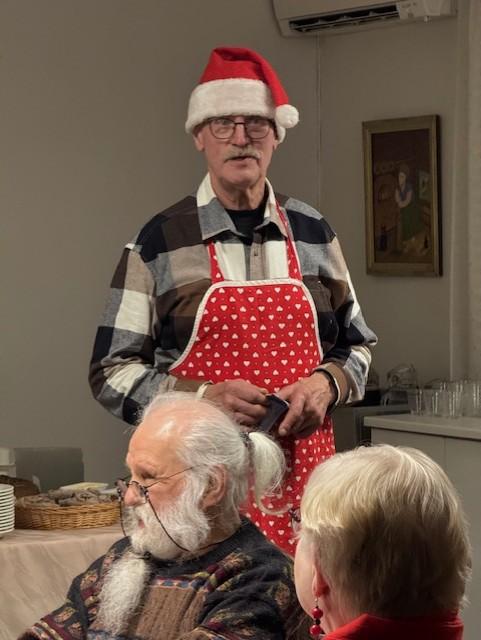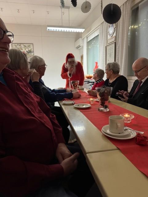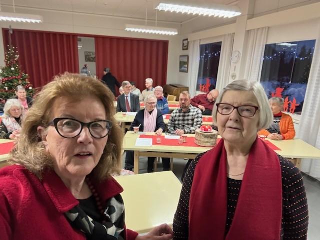 Ruokailun jälkeen siirryimme laulamaan yhdessä joululauluja salin puolelle. Kapellimestarina ja äänen avaamisessa toimi Antti. Eikä Antti tarvinnut väkeä houkutella, hän kysyi laulu laulun jälkeen vain että mitä lauletaan seuraavaksi. Kiitos Antti. Oli hyvä rauhoittava tunnelma, tuikut paloi pöydillä punaisten kaitaliinojen päällä, jouluvalot ja joulutontut ikkunoissa, isot pönttöuunit loivat lisäksi lämpöä ja joulun tunnelmaa. Kaikki hyvä oli läsnä ja nautittu hyvä jouluateria yhdessä, joululaulut kaikui meidän laulamana ja siinä oli läsnä yhdistyksen pikkujoulu.