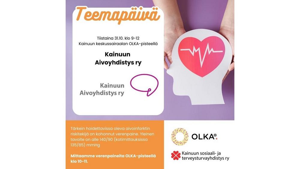 Yhdistyksen teemapäivä tiistaina 31.10.2023 klo 09.00-12.00. Keskitymme verenpaineeseen ja tiedon jakamiseen. Vapaaehtoisia ja vertaistuki paikanpäällä.