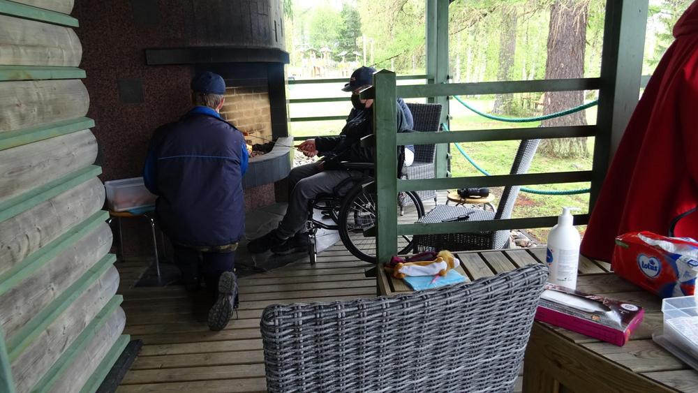 Nautiskeltiin vähän herkkuja kahvin kera. Istuttiin ulkotakan ääressä rupatellen, sade ei yllättänyt meitä.